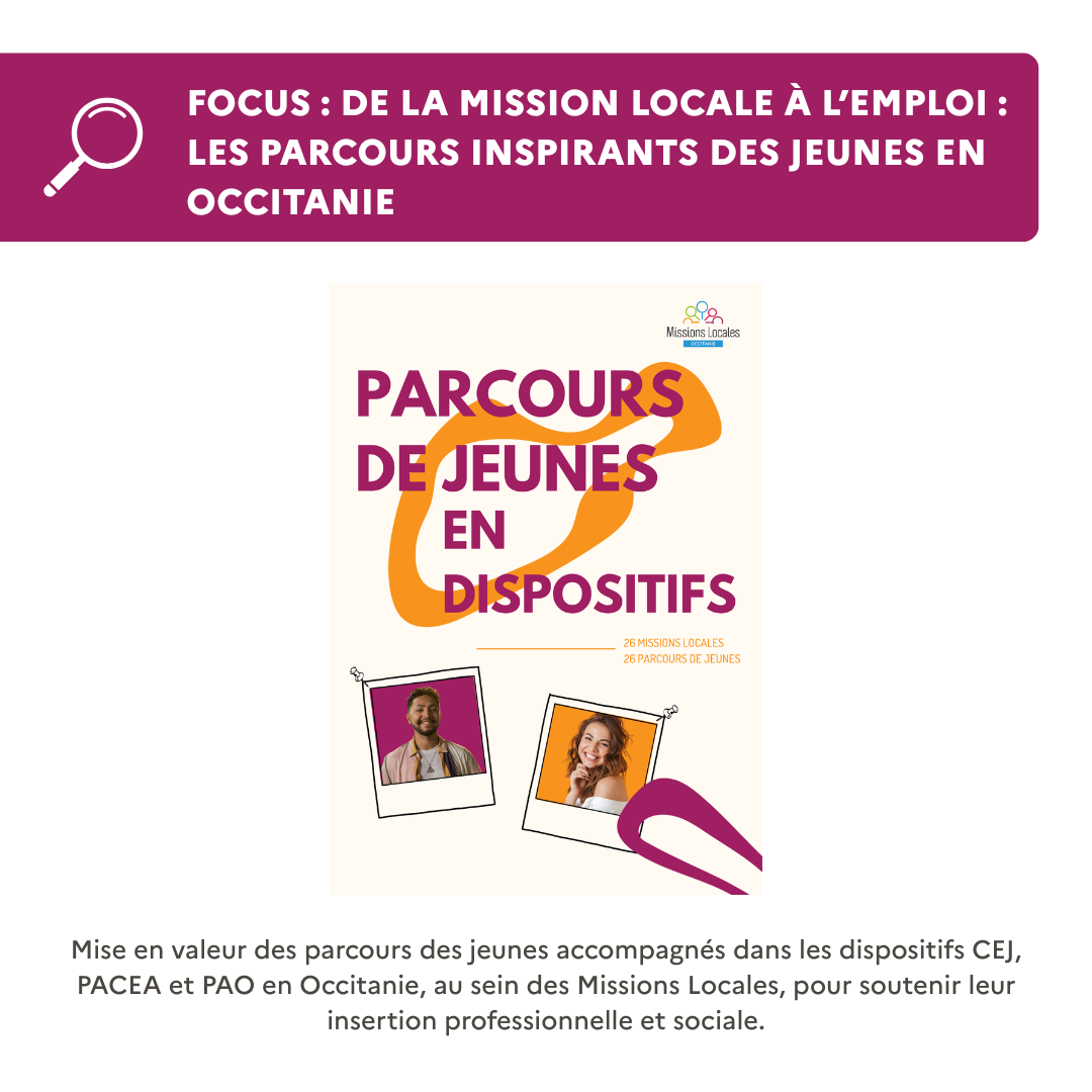 Attaché au principe de l’accueil inconditionnel de tous les jeunes, le réseau s’est doté d’un nouveau dispositif d’accompagnement : le Parcours d’Appui et d’Orientation (PAO), dispositif clef d’entrée à l’offre de service de la mission locale pour les jeunes qui ne sont pas en recherche d’emploi ou non éligible à l’inscription à France Travail. Les nouveaux flyers de présentation de nos solutions d’accompagnement sont à disposition sur notre site : https://www.missionslocalesoccitanie.org/jeunes/