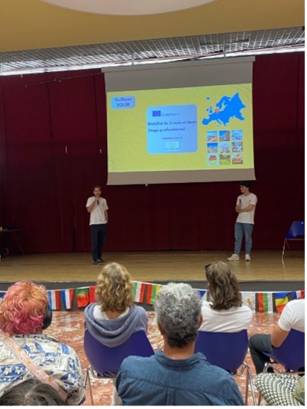Deux jeunes accompagnés par la structure ont témoigné de leur expérience : Morgane, qui a réalisé un stage de courte durée à Gênes, et Guilhem, parti pour un stage long terme à Berlin.